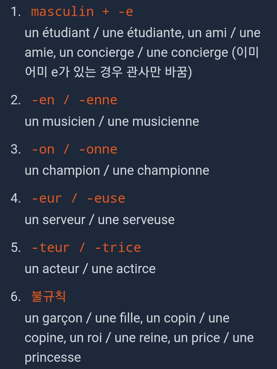 | [프랑스어 문법] Quiz! 남성명사를 여성명사로 바꾸기 40문제 (0) | 2023.01.06 |